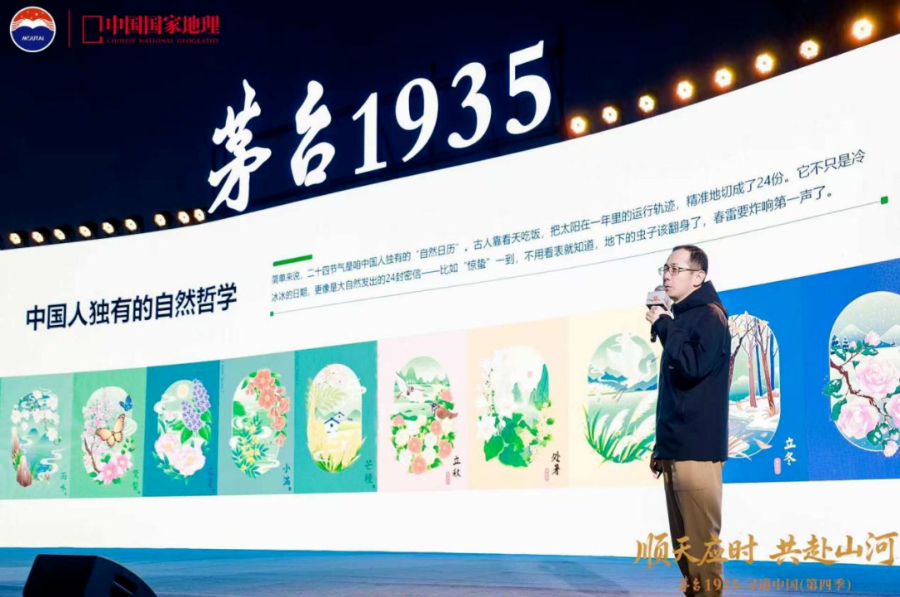 高颖在致辞中回顾了中国国家地理与茅台1935三年来的合作历程。她表示,寻道中国的诗意,藏在雨水浸润的山野、惊蛰唤醒的土地里,藏在那些只在特定时节出现的风物与顺天应时方能酿造的风味之中。二十四节气是中华民族对自然世界的深刻洞察与细腻感知,它不仅是先民用以划分时间、指导生活与农时的智慧结晶,更体现了中国人以气候物候而非抽象数字来理解自然节律的独特方式。而这,也正是茅台1935酿造哲学与节气文化的深刻共鸣。
